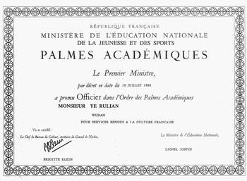 法国诗歌研究专家——叶汝琏教授 叶汝 1948年—1951年,在北京大学担任法国文学专业助教,并兼任文学院院长办公室秘书。 自1952年开始担任法国文学讲师,及西方语言文学系学术委员会委员。1958年在反右运动中被迫脱离教职,直至1971年反正。平反后,北大恢复其讲师资格,同时在西语系欧洲文学史研究室任研究员。 1980年接受武汉大学校长邀请,调离北大。主持创建武汉大学法国研究所(C.H.E.F.),并出任副所长(1982—1984)。1983年至1985年任《法国研究》季刊主编。自1985起,受聘担任法国文学教授,及法国研究所所长一职。1987年至1988年间,担任武汉大学法语系系主任,继续兼任法国研究所所长。 1989年9月,根据叶汝琏教授的要求,不再担任一切行政职务。隐退后仍从事部分学术指导性工作。 1982年加入中国法国文学研究会,自1987年起担任该会副会长。1986年出任桂林《国际诗坛》杂志编委。1990年起被选为中法文化研究会理事会成员。 叶汝琏教授还兼任以下学术组织通讯会员: 保罗·克洛岱尔之友协会(巴黎);圣琼·佩斯之友协会(普罗旺斯);乔治·布拉克之友协会(巴黎);阿尔蒂尔·兰波之友协会;维克多·谢阁兰协会(荣誉理事) 1989年10月接受法国政府总理颁发的文化教育棕榈勋章。1990年3月获得武汉大学颁发的法国语言文学教学研究高级荣誉证书。