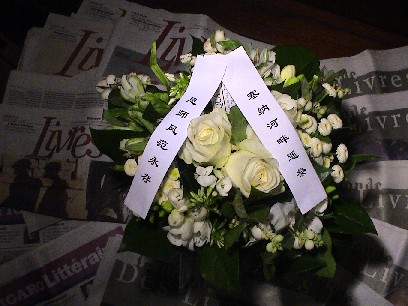 Le 1er septembre 2007, à 3 heures à Paris (9 h à Wuhan), sur le Pont des Arts - un endroit que tu n'as jamais cessé d'aimer, un bouquet de fleurs jeté dans la Seine, en guise d'adieux pour ton grand départ...