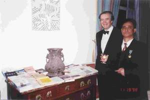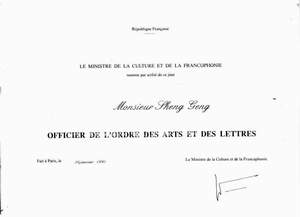 耿升接受法国文化艺术勋章时与法国大使毛磊合影